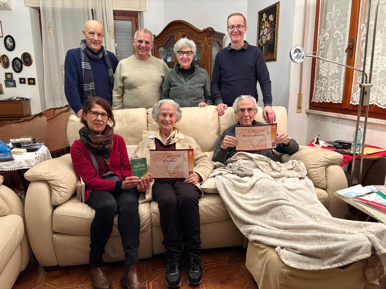 El día 13 por la tarde se visitó el Núcleo de Alghero para celebrar una hermosa fiesta con Rita Fenu y Battista Rondello. El matrimonio comenzó la expansión de los TOV en esta localidad y hasta el año pasado estuvieron impartiendo Talleres. Nos mostraron un álbum de fotos de toda la familia Fenu junto al Padre Ignacio en diferentes lugares de Italia, donde se celebraron EED. Un gran regalo del Señor poder asistir a su fiesta como GUÍAS EMÉRITOS, palabra que cobra todo su sentido con este matrimonio que aún, pese a su edad, siguen viviendo la espiritualidad de los TOV y son Hermanos Mayores para los Guías de este Núcleo. GRACIAS RITA Y BATTISTA